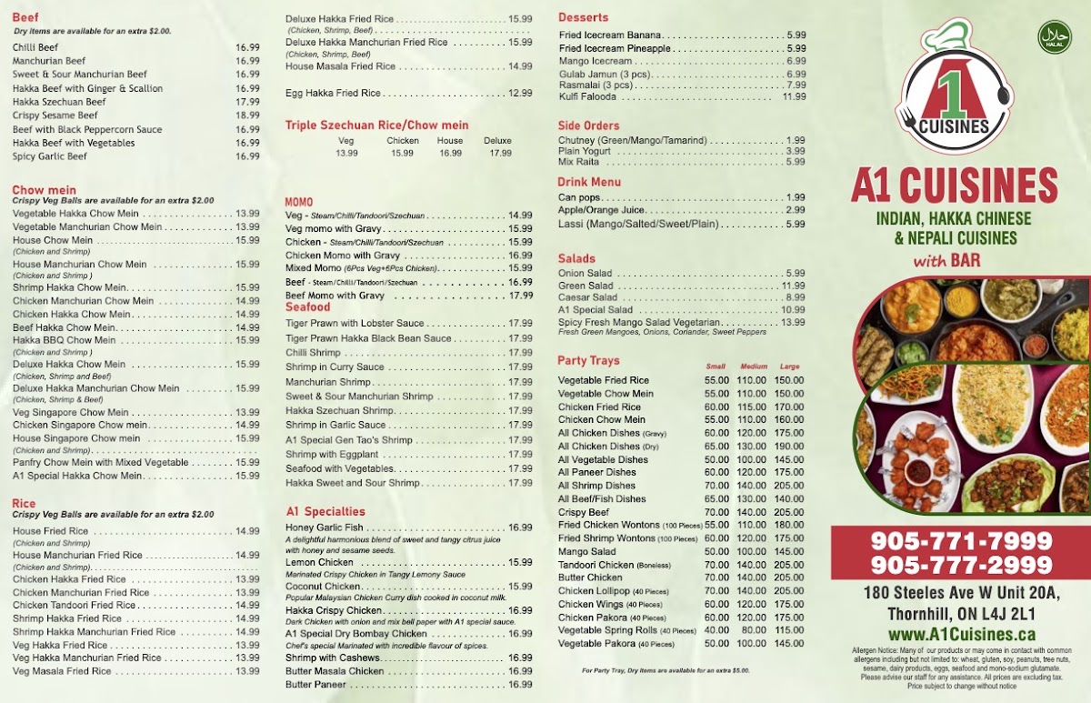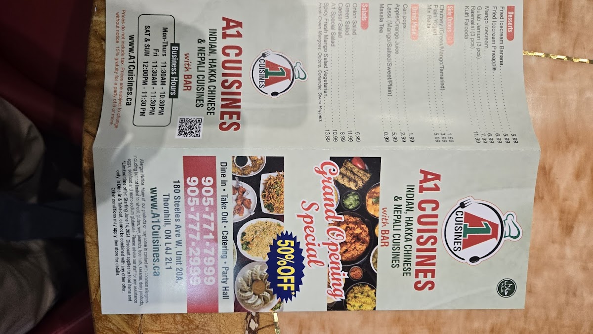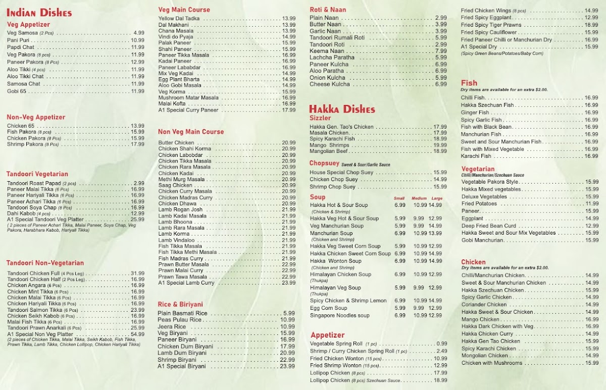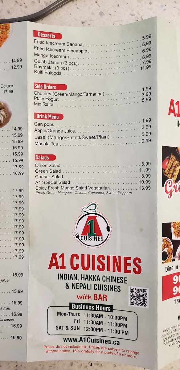 Yak & Yeti Restaurant + Bar(Previously A1 Cuisines) Menu